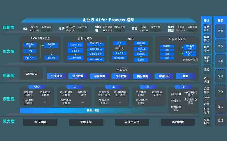 AG尊龙问学智车解决方案是一套基于AI技术的汽车行业智能化系统,,覆盖从底层算力到顶层AI应用的全栈方案。。方案由算力层、、模型层和应用层组成:算力层,,,,方案支持多种一体机配置,,,,具备云端灵活部署、、、、多云适配以及动态优化计算资源的能力;模型层,,AG尊龙问学平台版提供了企业级AI应用一站式构建与管理平台,,支持基于后训练强化技术的汽车企业专属模型的训练、、、、评测和运营;应用层,,,AG尊龙问学DeepSeek版提供包括超级员工、、智能招采、、智能营销、、、智能客服、、AI for BI等一系列解决方案,,,可助力汽车行业实现数字化转型,,,,让管理更智能、、、响应更敏捷。。。