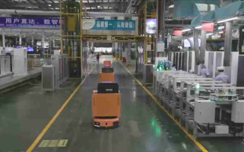 为车载冰箱物流配送打造的智能解决方案,,包含产中物流通过潜伏举升AMR搬运至线边,,,产后成品物流智能仓储,,,流程包含产中物流智能齐套入库,,,线边安灯叫料AMR智能配送至线边,,成品入库、、、出库,,,,通过无人堆高车机器人,,智能仓储管理替代人工作业管理,,实现更高存储、、更高效率、、更具柔性化的解决方案。。。。